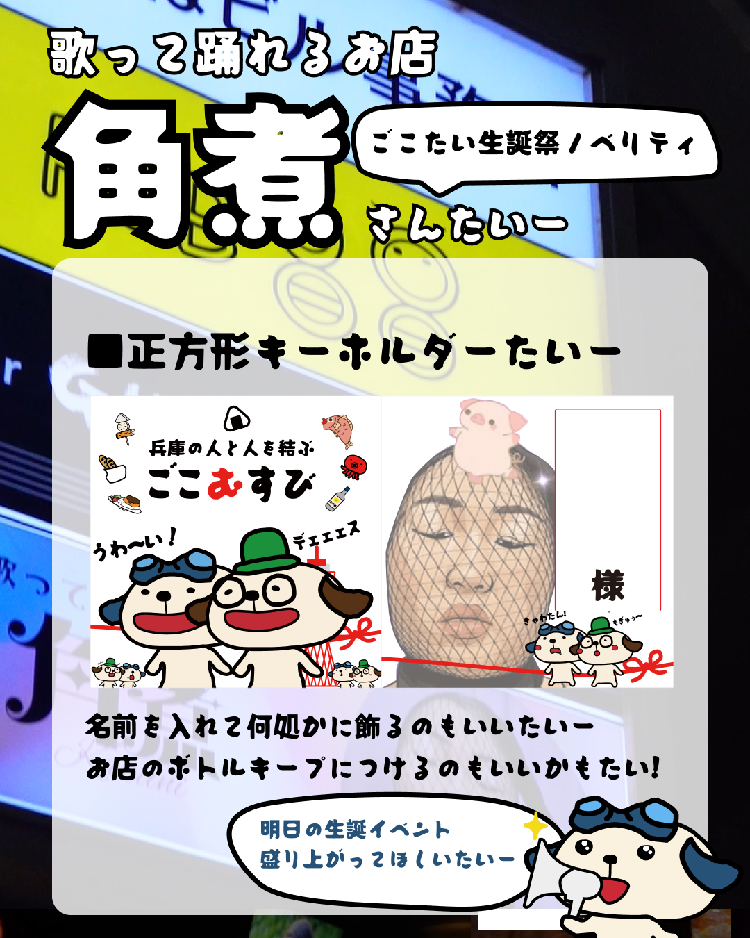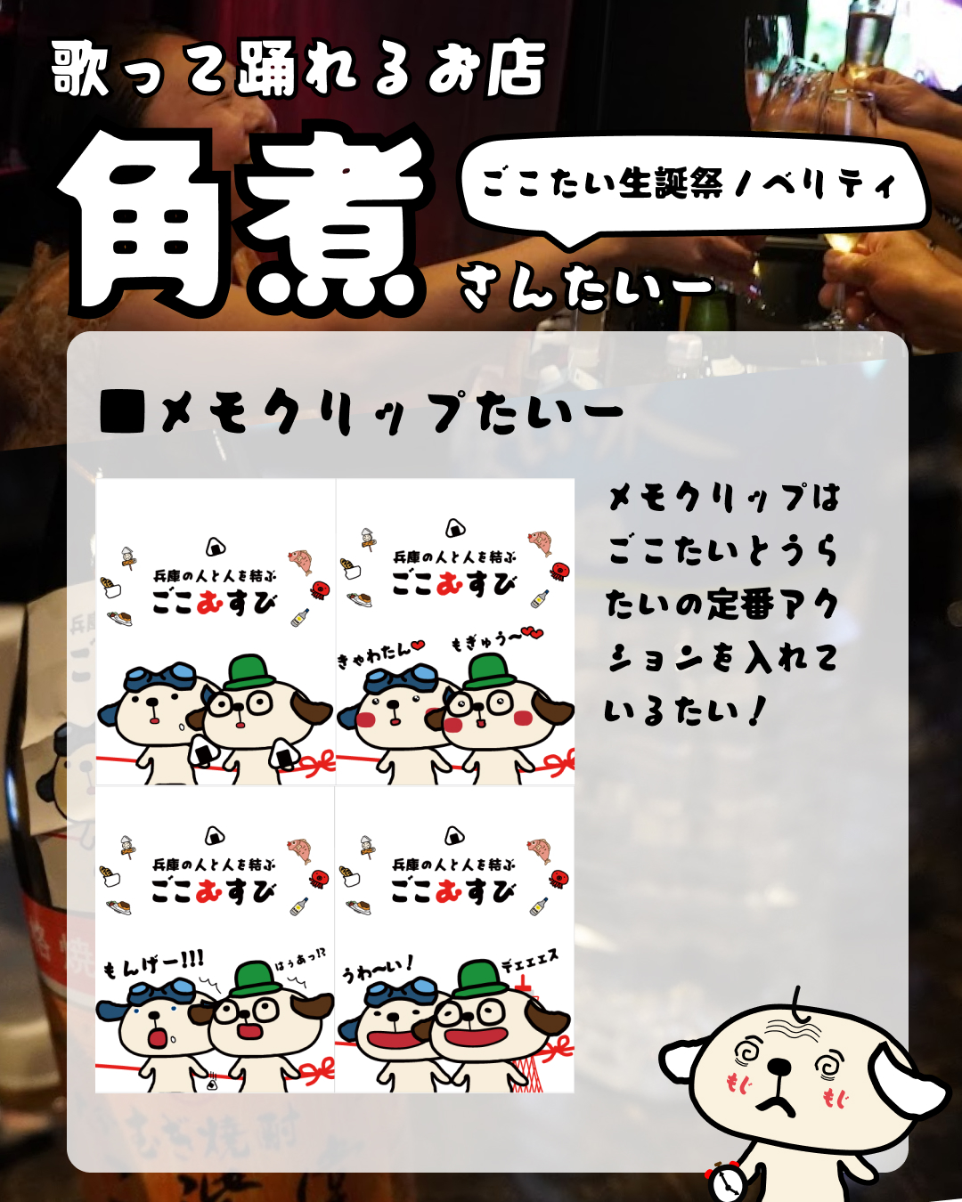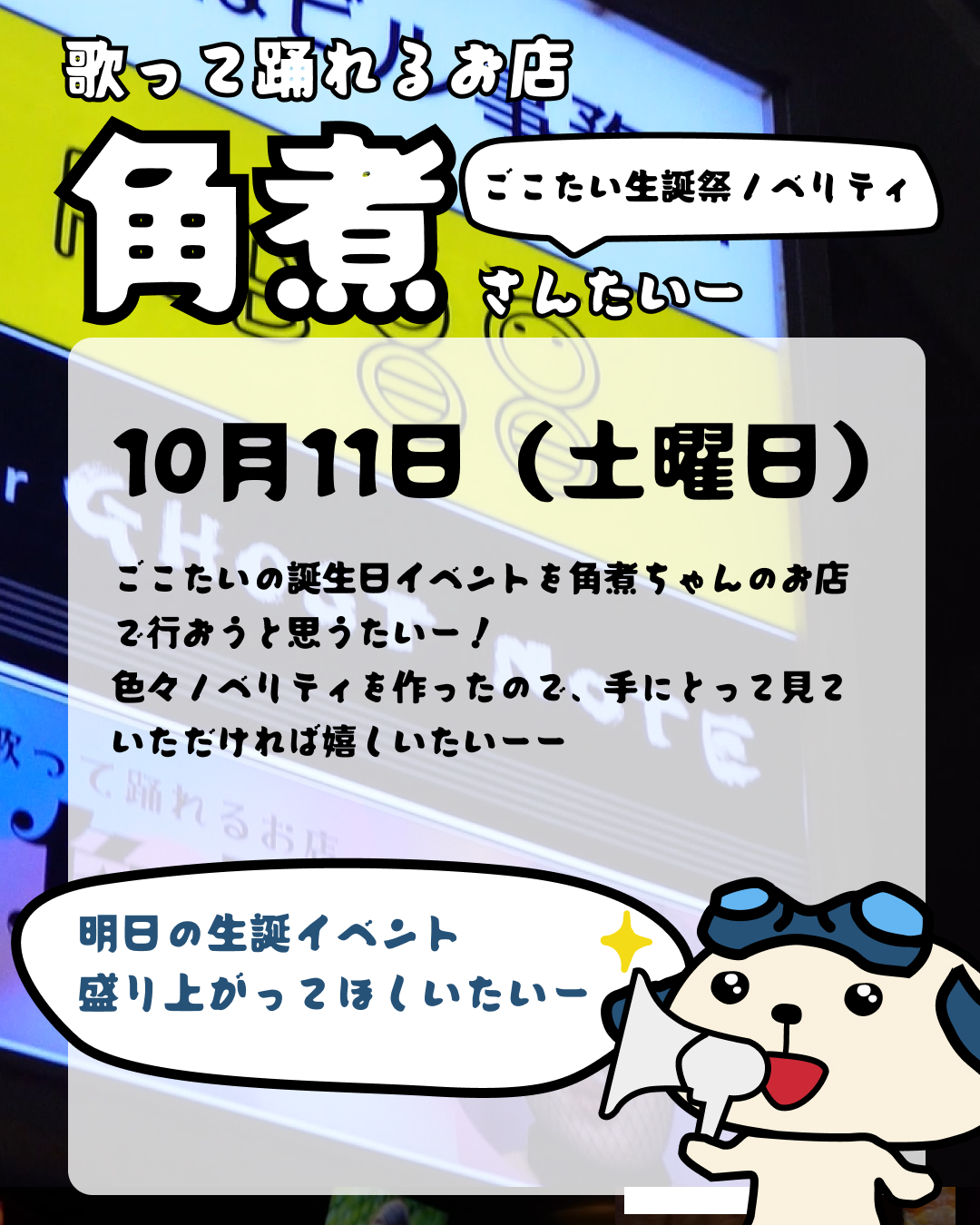 10月11日(土)、垂水の「角煮ちゃん」にて、ごこたいの誕生日イベントを開催いたします。